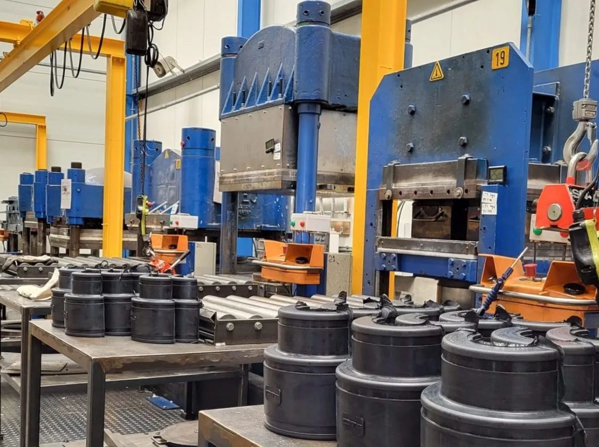 Temperatuur en druk zijn de twee ‘ingrediënten’ om met een compressiepers een rubbervormartikel te maken. De precieze combinatie van deze twee zijn voor ieder product verschillend. Hier komt onze expertise om de hoek kijken. Bij Hofland Rubber in Tolbert hebben we 15 vulkanisatiepersen staan. Deze hebben verschillende afmetingen zodat we met zowel kleine als grotere matrijzen kunnen werken. Daardoor hebben we een breed aanbod aan mogelijkheden voor rubbervormartikelen. Op zoek naar een groot rubbervormproduct? Onze grootste pers heeft een maximale afmeting van 1250 mm x 1250 mm.