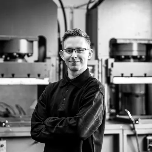 ProductiemedewerkerDemy is de benjamin van ons team en vaak met Johnny op de persafdeling te vinden en is de specialist in het lassen van rubberprofielen. Op feestjes transformeert Demy van een rustige collega in een drukke stuiterbal.